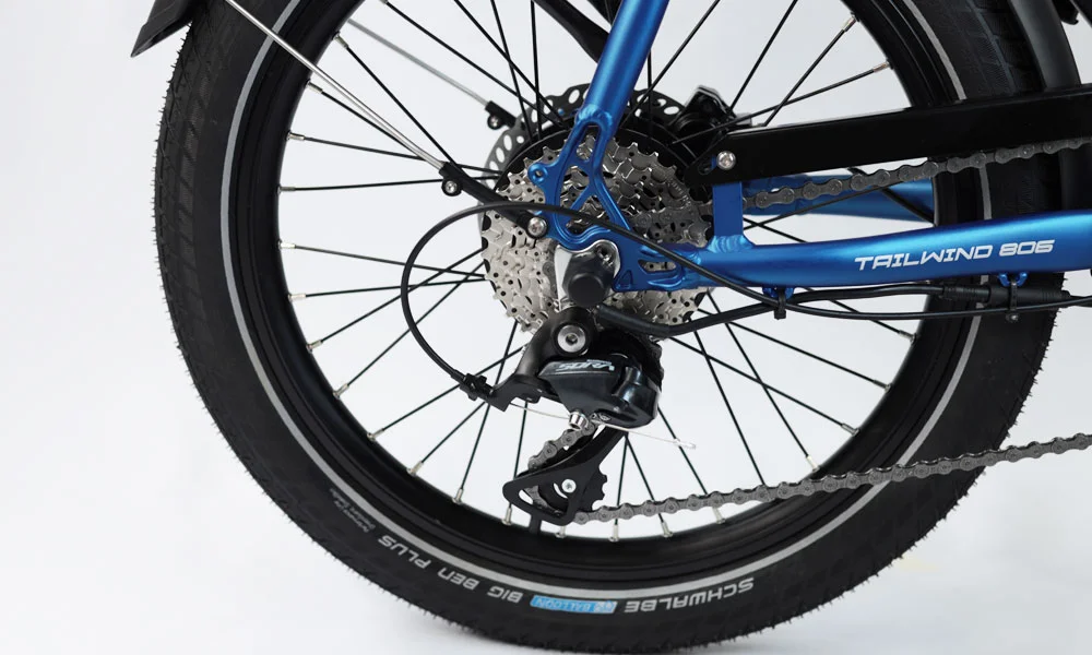 The Tailwind 806 is a sturdy long range e-bike. With our superb locking mechanism locked you will not notice you are on a folding bike, there is absolutely no frame twist feel when riding. Tailor your Tailwind 806 by choosing your preferred battery range, power delivery system and colour.